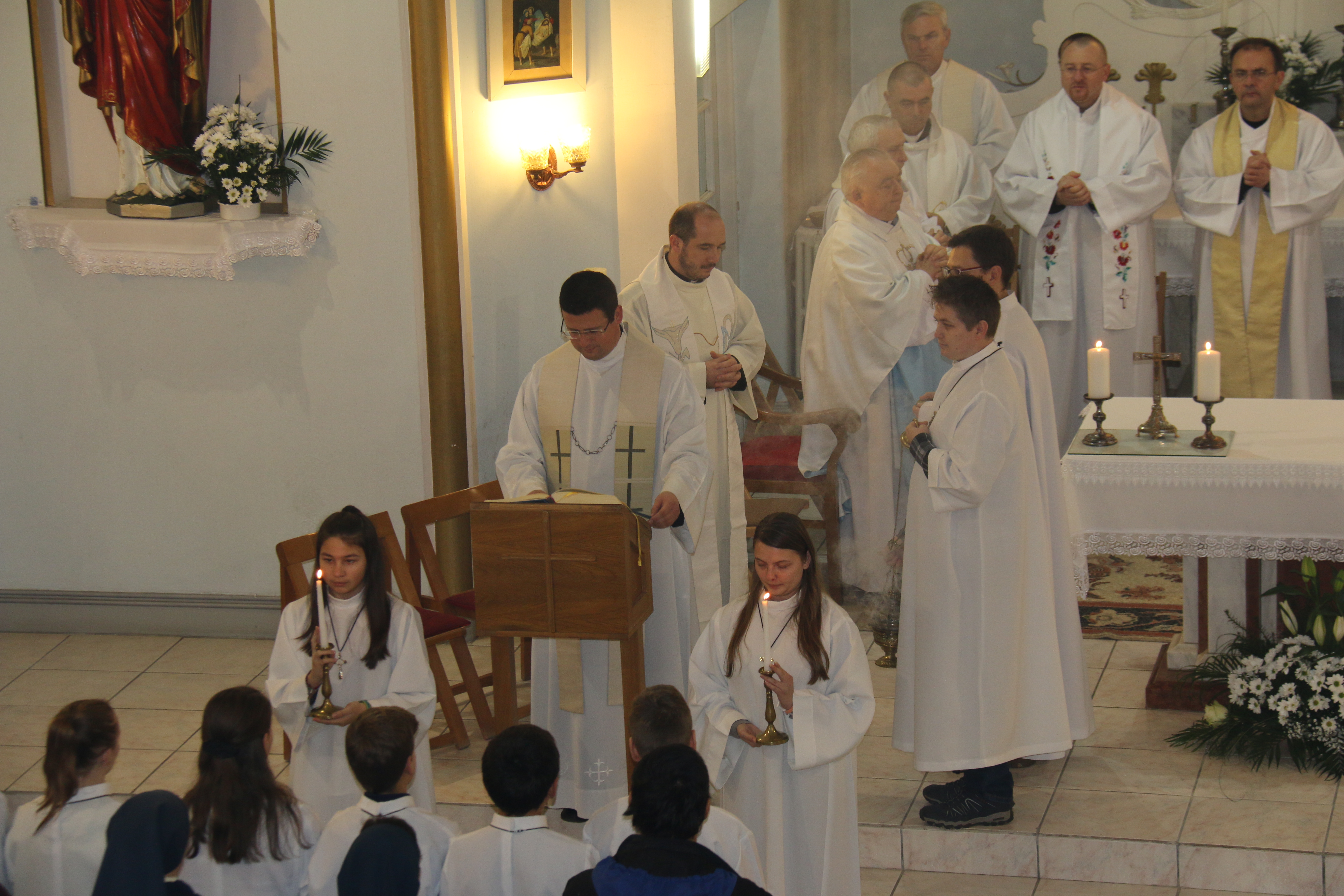 A nagyváradi Katalin-telepi római katolikus templomot zsúfolásig megtöltő híveket Vass Csaba CM lazarista szerzetes, plébános köszöntötte, főleg az egyébként nagyváradi származású Barta Szabolcs CM magyarországi tartományfőnököt, a Vincés család tagjait, az idén aranymisés és szerdán 75. születésnapját ünneplő Mons. Fodor József általános helynököt, valamint a zarándokokat. Hangsúlyozta: külön öröm számára, hogy olyan sokan egybegyűltek, hiszen így igazán családias, bensőséges az ünnep.